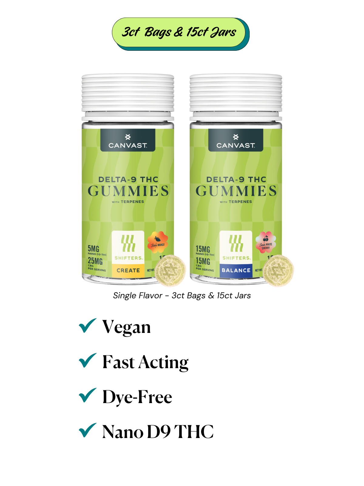Our new functional gummies—designed to elevate your day. Vegan, dye-free, fast-acting, and powered by nano THC. From creative energy to peaceful calm, there’s a gummy to match the moment.