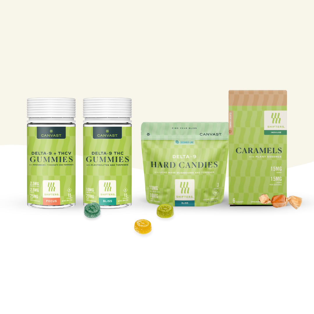 Canvast provides a focused selection of Delta 9 products tailored to meet customer demand. Choose from our best-selling gummies or hard candies and caramels to stock your shelves with high-quality options that cater to a range of preferences. Partner with us for a diverse and reliable inventory. selection for your store.